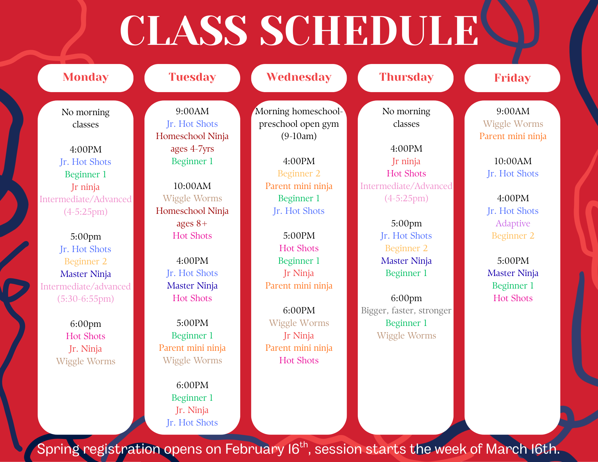 Spring session begins March 16th